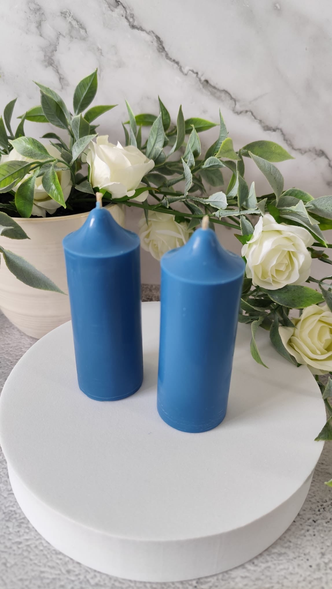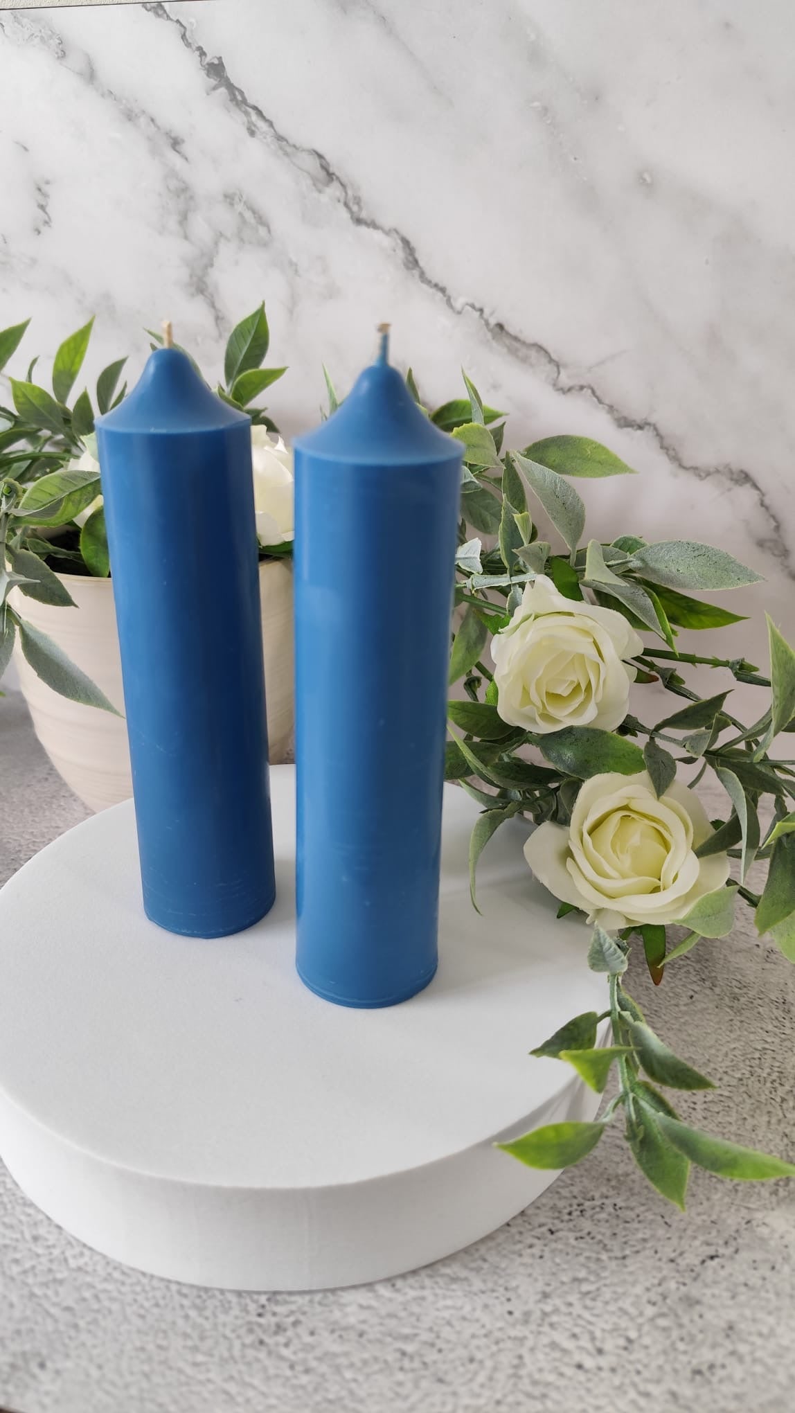Blue Soy Wax Church Pillar Candles - Unscented, Set of 2 (4 Sizes)